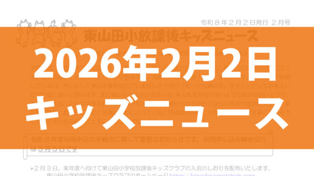 前回のキッズニュースはこちらキッズニュースのDLはこちら今年は2月4日が「立春」です。暦のうえでは「春」とは言えども、雪がちらつくなどまだまだ寒い日が続きます。インフルエンザも相変わらず猛威を振るっていますので、しっかりと感染&防寒対策をお...