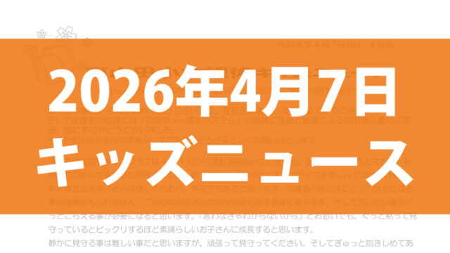前回のキッズニュースはこちらキッズニュースのDLはこちら新入生の皆様、ご入学おめでとうございます!ようこそ東山田小学校放課後キッズクラブへ。そして在校生の皆様、進級おめでとうございます!これから1年間、楽しい年にしていきましょうね。今回のキ...